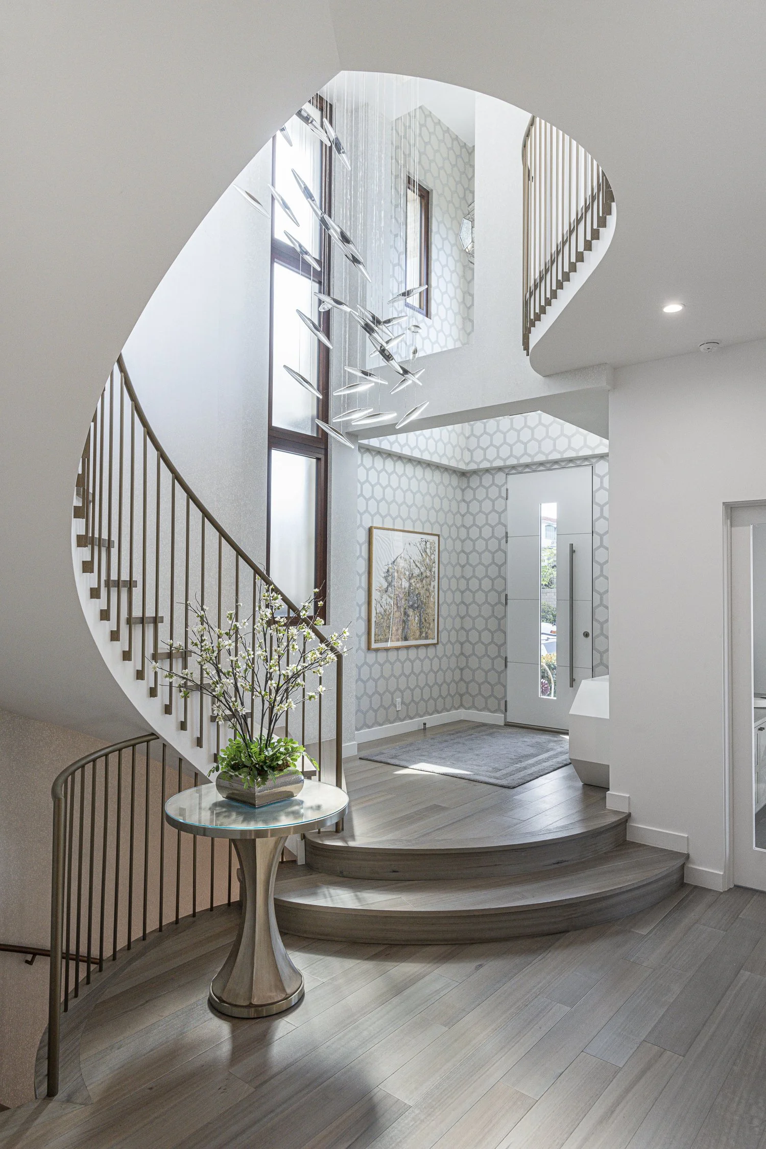 On a hillside overlooking downtown Manhattan Beach and the ocean, this new construction project was the perfect blend of metallics and warmth. Italian mahogany windows and doors frame the space filled with metallics and neutrals, a timeless and elegant pairing. This palette perfectly reflected this stylish and trendsetting client. The goal being the architecture and interiors which felt they could be anywhere from Los Angeles, New York or Miami, it was inspiring to bring unexpected glamour to this small beach city outside of Los Angeles.