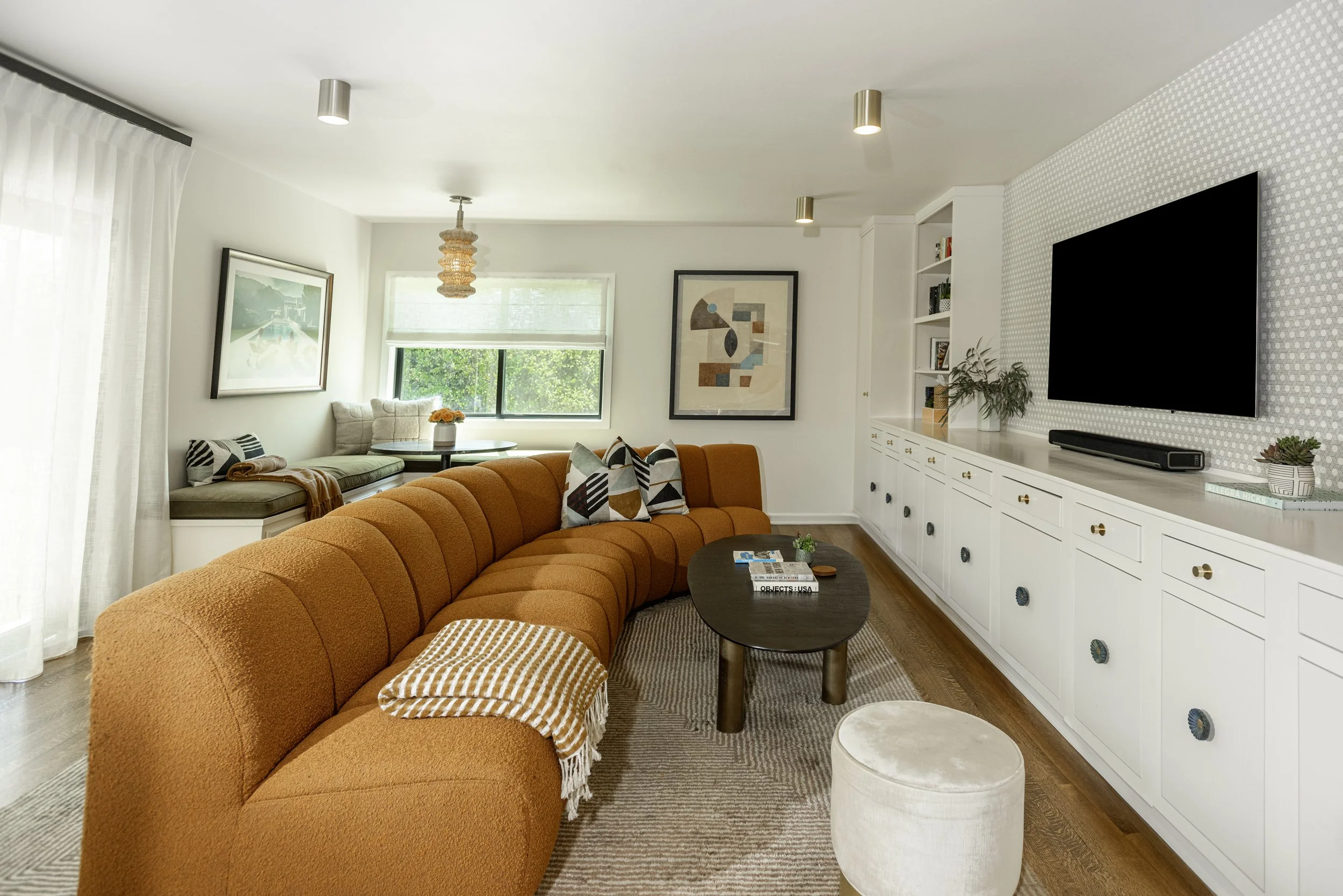 This midecentury gem had previously been renovated removing some of its original charm. Luclkily its blank canvas and some original architectural elements had been kept intact and the client was on board with infusing some fun into it. With the use of some color, walnut and terrazo, these materials blended perfectly with the original feel of the house.